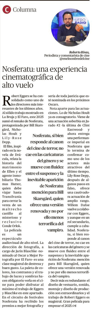 Nosferatu: una experiencia cinematográfica de alto vuelo (columna Diario Austral)